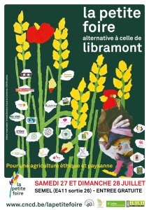Initiée en 2011 en après-midi de contrepoint à la Foire agricole de Libramont, la Petite Foire s’est muée en 2012 en une journée dense, intense et festive. Cette année, elle s’étendra sur deux jours : les samedi 27 de dimanche 28 juillet. Elle quitte aussi le territoire strictement libramontois, pour s’installer à deux pas, dans une ferme paysanne à Semel. Un marché paysan, des stands d’animation, des spectacles, une soirée festive, une promenade de découverte nature, des rencontres, des débats, une atmosphère familiale seront proposés par le MAP (Mouvement d’Action Paysanne), la Colupa (Colalition Luxembourgeoise pour la Paix), Oxfam (Magasins du Monde) et le CNCD-11.11.11 avec plus de 30 associations partenaires. Agroécologie, agriculture paysanne, monnaies locales, accès à la terre, coopératives, réflexions sur les agrocarburants, les semences, les OGM, voilà quelques pistes qui seront empruntées par les citoyen/ne/s qui rejoindront La Petite Foire, ses activités et son climat de fête, en se disant que pour l’agriculture ici et dans le monde, une alternative est possible. L’entrée est gratuite !
