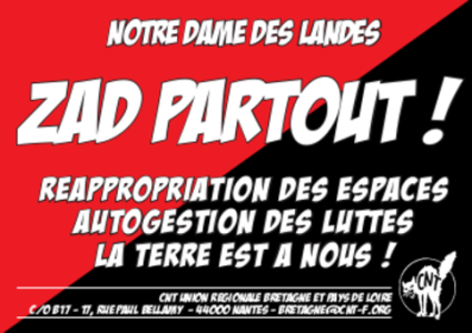 Par ailleurs nous réaffirmons notre soutien à tou·tes les occupant·es de la ZAD, car nous sommes convaincu·es que ce formidable laboratoire de l’autogestion et d’expérimentation sociale peut nous servir à trouver une voie pour enfin sortir du capitalisme.