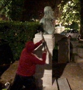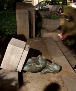 vidéo de l’action : https://www.rtbf.be/info/societe/detail_nous-avons-assiste-au-deboulonnage-d-une-statue-de-leopold-ii?id=10520667