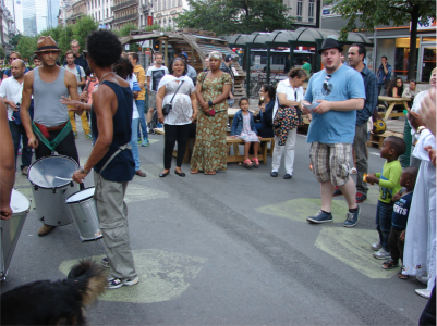 Le lendemain les sans papiers, hommes et femmes, étaient convoqué.e.s à l’Amigo, pour discuter des actions les lundis à 14h à Arts-Loi et les mercredis à 18h au Bv. Anspach. Le bourgemestre avait déjà communiqué, par sa police, que ces actions ne seraient plus tolérées.